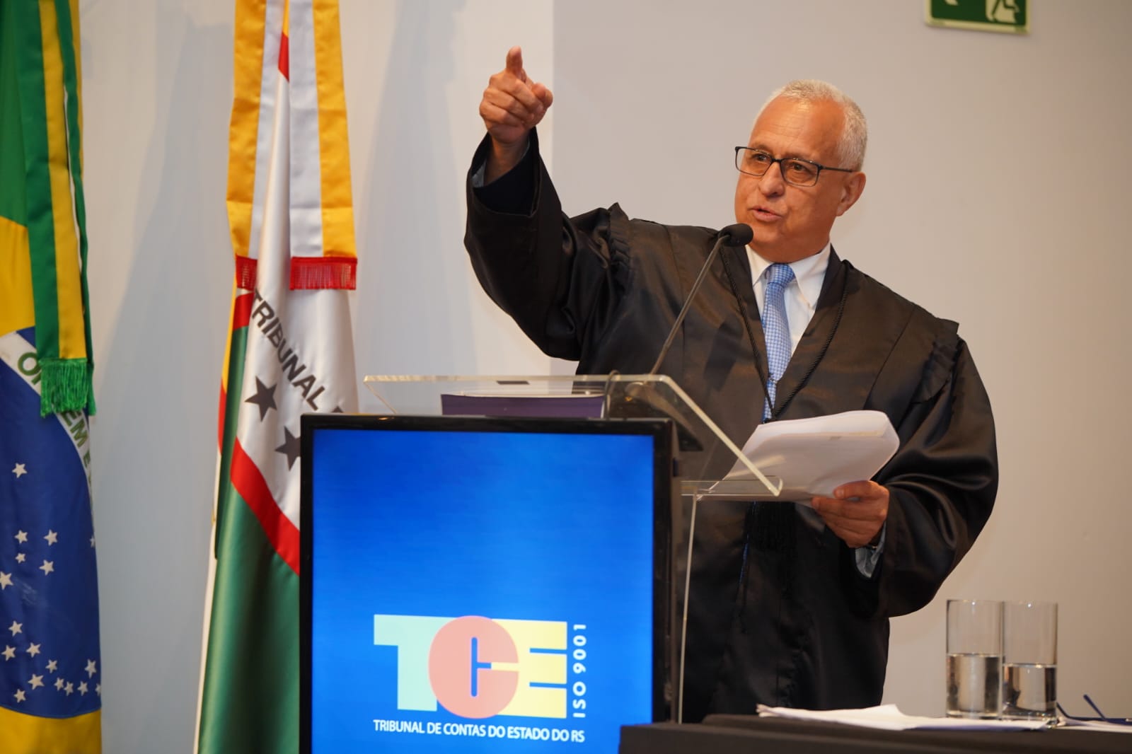 Marco Peixoto discursa na solenidade em que foi empossado presidente do TCE-RS para o biênio 2024/2025