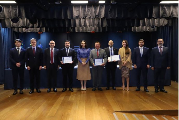 Antes do início dos debates, foi realizada a solenidade de outorga do Colar do Mérito do TCE-RJ ao ministro Jorge Oliveira, em reconhecimento à sua destacada atuação em favor do fortalecimento do controle externo no país.