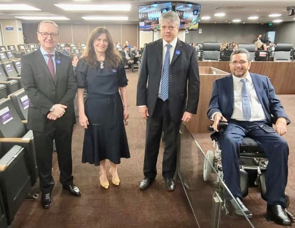 O presidente do Conselho Nacional de Presidentes dos Tribunais de Contas, e do TCMRio, Luiz Antonio Guaraná, a convite do presidente do Tribunal de Contas da União, ministro Bruno Dantas, participou na manhã desta quarta-feira, dia 04/10, da Sessão Extraordinária solene do Plenário para entrega do Grande Colar do Mérito do TCU. O evento aconteceu na Sala Ministro Luciano Brandão e Souza, em Brasília, e contou com a presença de diversas autoridades representando os Poderes Judiciário, Legislativo e Executivo.