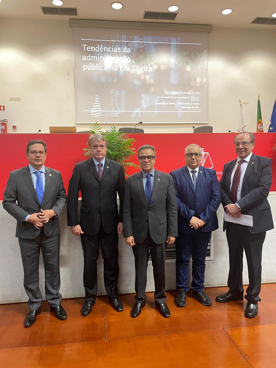 O presidente do Conselho Nacional de Presidentes dos Tribunais de Contas (CNPTC), Luiz Antonio Guaraná (TCMRio), compôs a mesa de honra na cerimônia de abertura da oitava edição do Seminário Ibero-Americano de Direito e Controlo, que teve início nesta segunda-feira, dia 09/09, na Faculdade de Direito da Universidade de Lisboa (FDUL), em Portugal. Ele esteve acompanhado de outras autoridades que representaram as instituições parceiras e promotoras do evento. Em seguida, o presidente Guaraná mediou o debate sobre “Tendências da Avaliação Pública na era digital”, com palestra do presidente do Instituto Rui Barbosa (IRB), conselheiro Edilberto Pontes (TCE-CE).